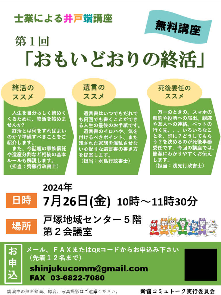 7/26(金)、終活セミナーを「無料」開催します!